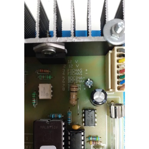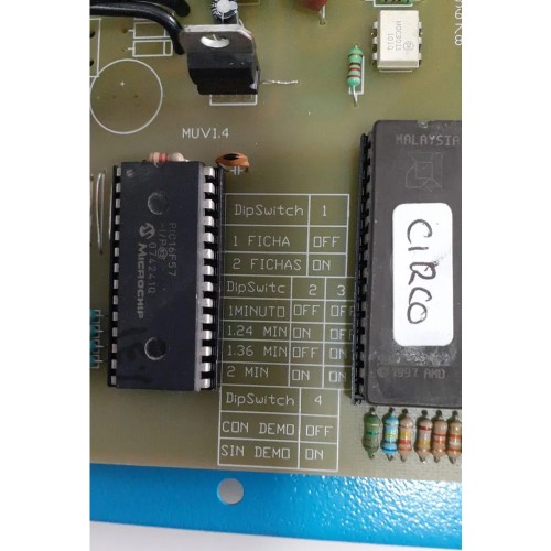 Consiste en una tarjeta electrónica con dipswitch de programación con 4 opciones de seleccion tiempo: 1 Minuto, 1.24 minutos, 1,36 minutos y 2 minutos, Seleccion de 1 o 2 monedas por credito. Incluye sonido que se reproduce durante el juego con la música de acuerdo a la figura del montable.